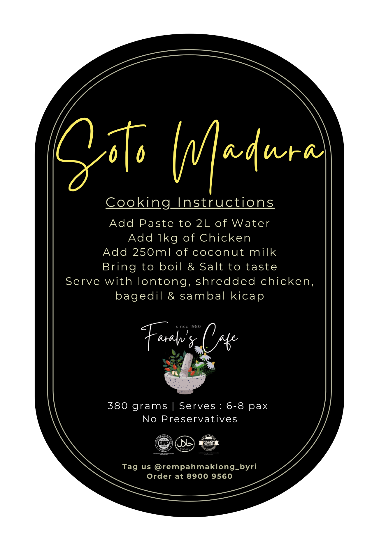 Serve with lontong, shredded chicken, bagedil & sambal kicap